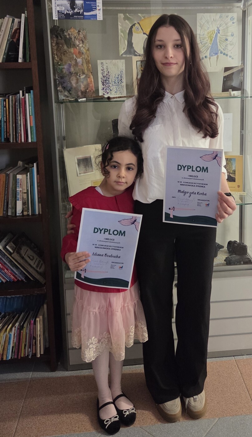 Od 17.02.2026 roku w bibliotece szkolnej odbywały się przesłuchania uczniów do dzielnicowego Konkursu recytatorskiego „Warszawska Syrenka”. Pod okiem bibliotekarzy i uchem logopedów oraz nauczycieli współorganizujących kształcenie trwały prezentacje przygotowane przez uczniów. Należało wyłonić do kolejnego etapu po dwie osoby z grup wiekowych klas 1-3, 4-6 i 7-8. Kilkutygodniowe przygotowania pełne pozytywnych uwag, śmiechu i wskazówek nauczycieli przyczyniły się do sukcesu uczniów naszej SP 404 im. WOŚP. Dwie dziewczynki z klas 1 i 8 zakwalifikowały się do finału w Mazowieckim Instytucie Kultury, a jedna uczennica z klasy 2 otrzymała wyróżnienie. Oczywiście gratulujemy wszystkim uczestnikom konkursu i życzymy kolejnych sukcesów w następnych latach. Szczególnie zależy nam, aby nasz etap szkolny stał się przyczynkiem do rozwijania nie tylko umiejętności oratorskich, ale także kompetencji emocjonalnych i społecznych. Niech obcowanie z poezją i prozą rozwija zainteresowania literackie oraz wrażliwość na bogactwo i piękno języka polskiego.
