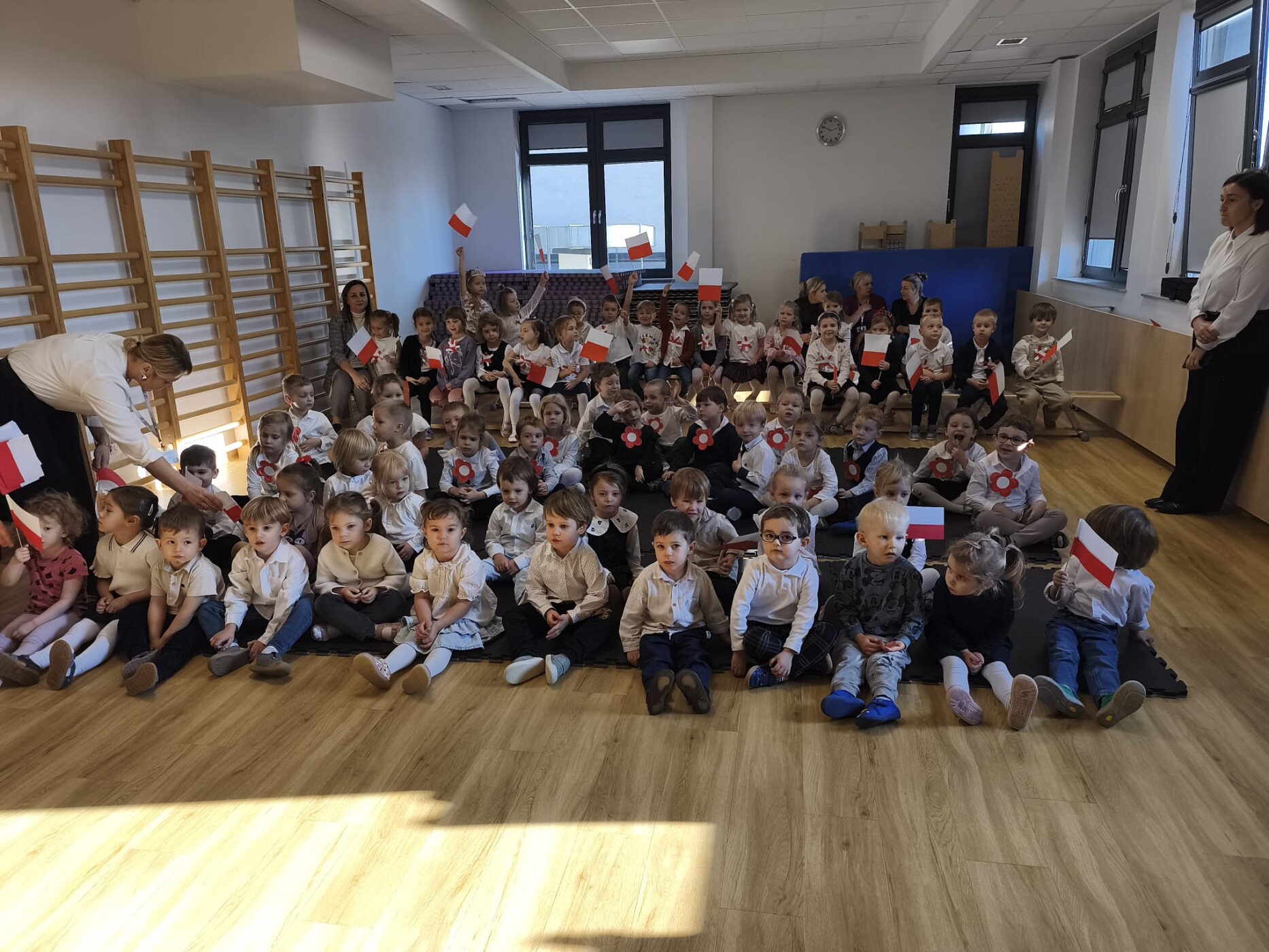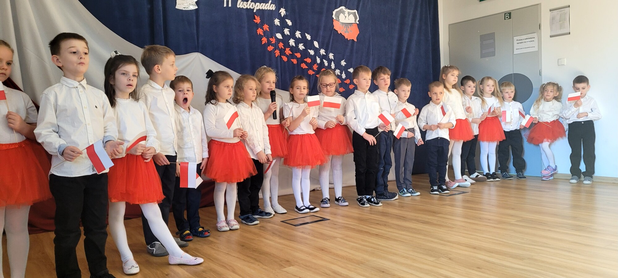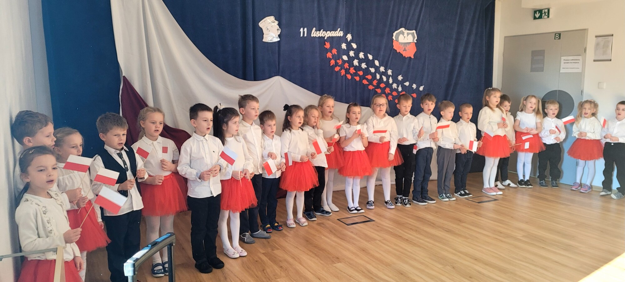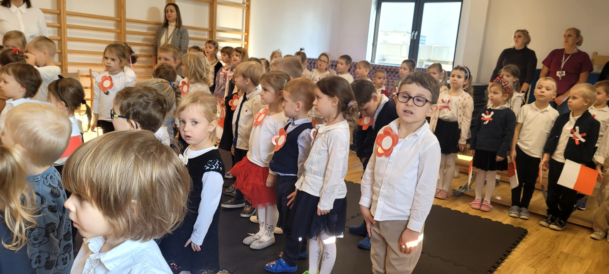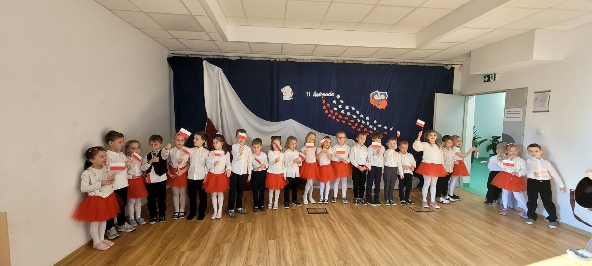 Dnia 7.11 2025r. w ramach obchodów Święta Niepodległości grupa Słoneczniki wystąpiła przed pozostałymi oddziałami przedszkolnymi z wierszykami i piosenkami patriotycznymi.
