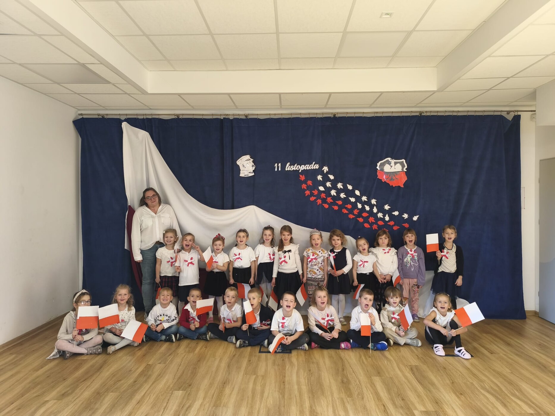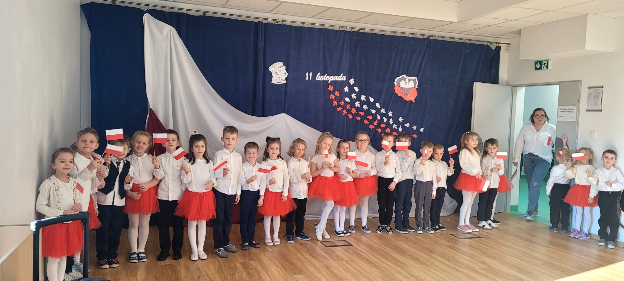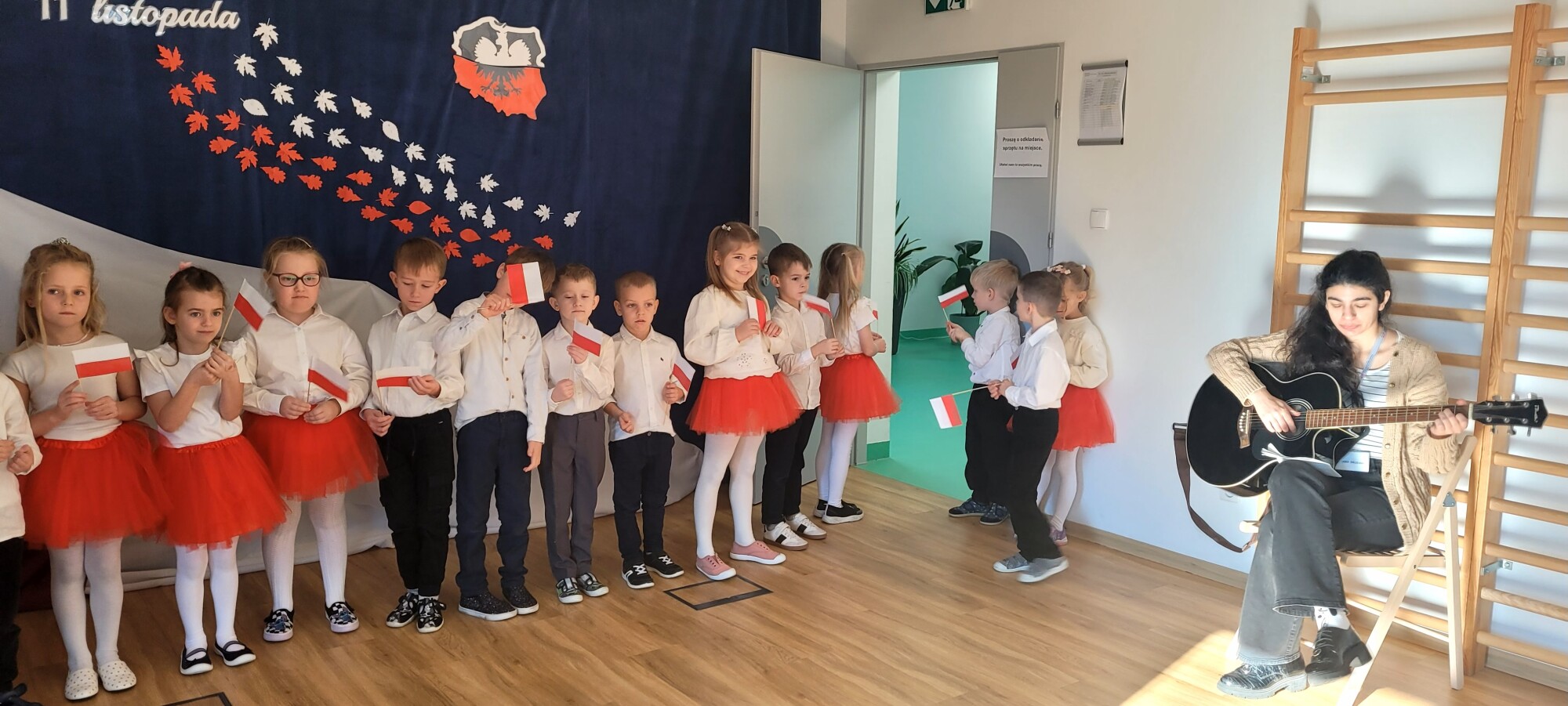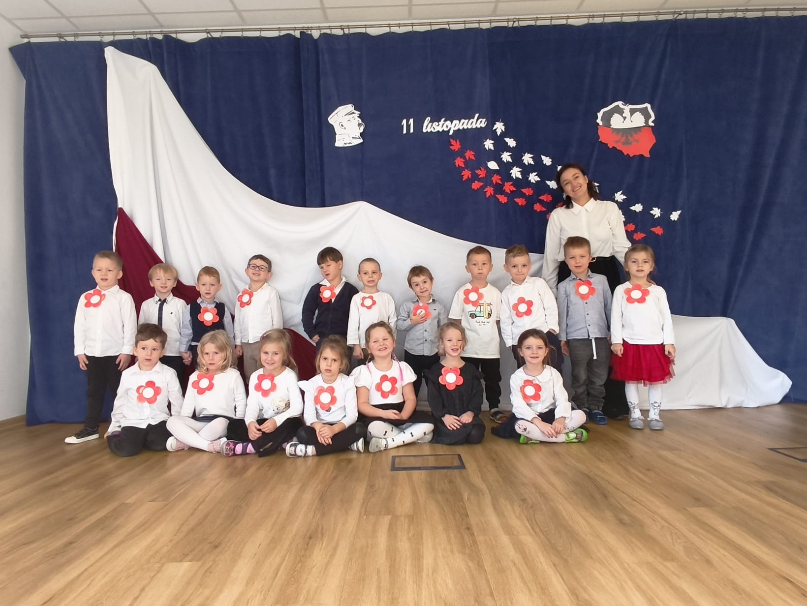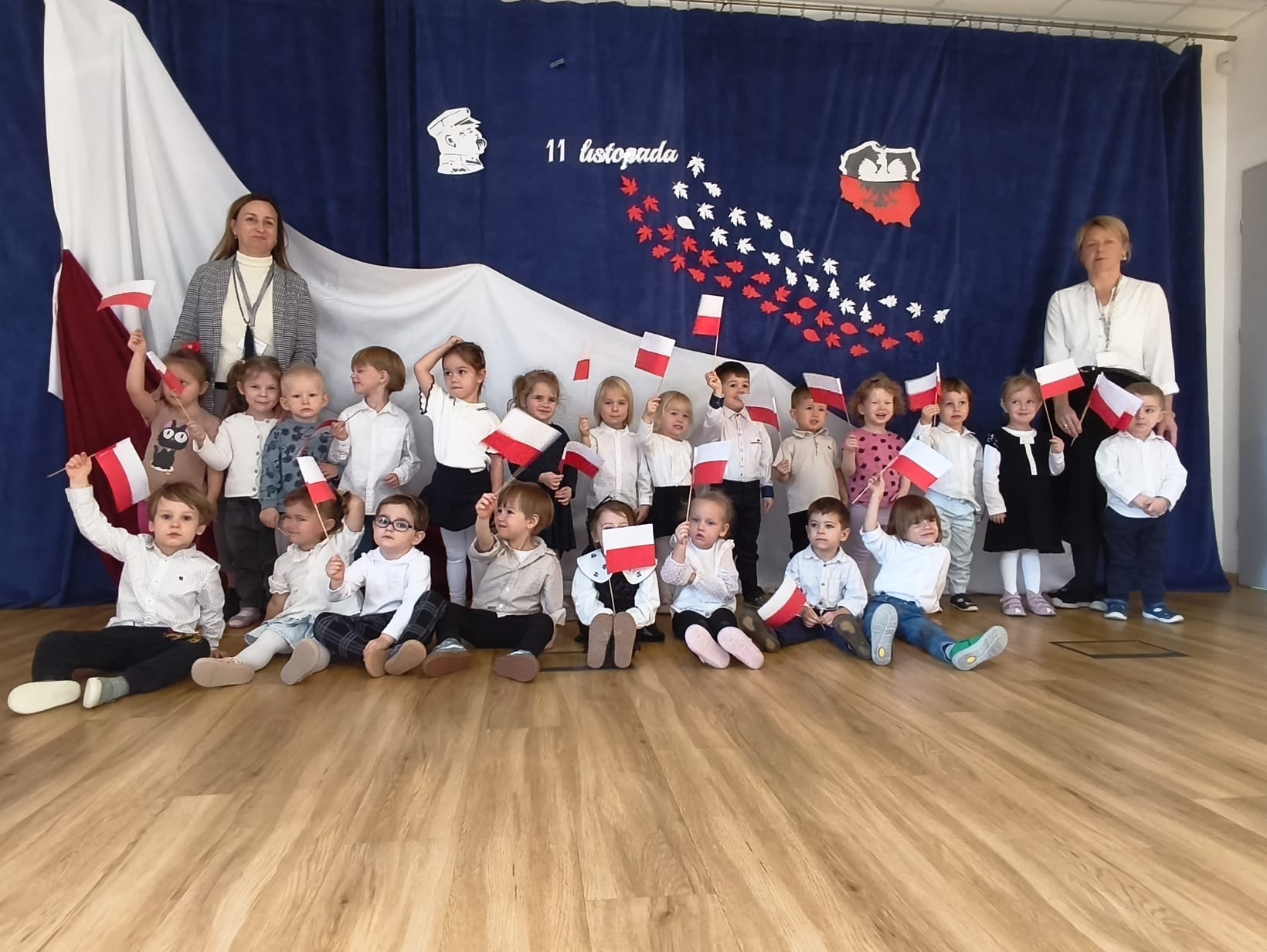 Dnia 7.11 2025r. w ramach obchodów Święta Niepodległości grupa Słoneczniki wystąpiła przed pozostałymi oddziałami przedszkolnymi z wierszykami i piosenkami patriotycznymi.