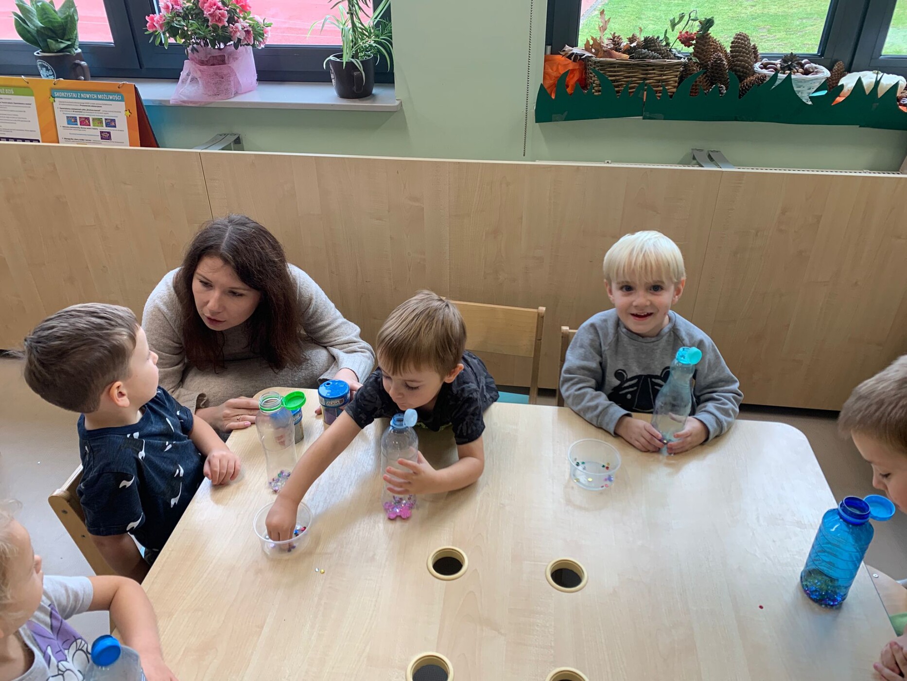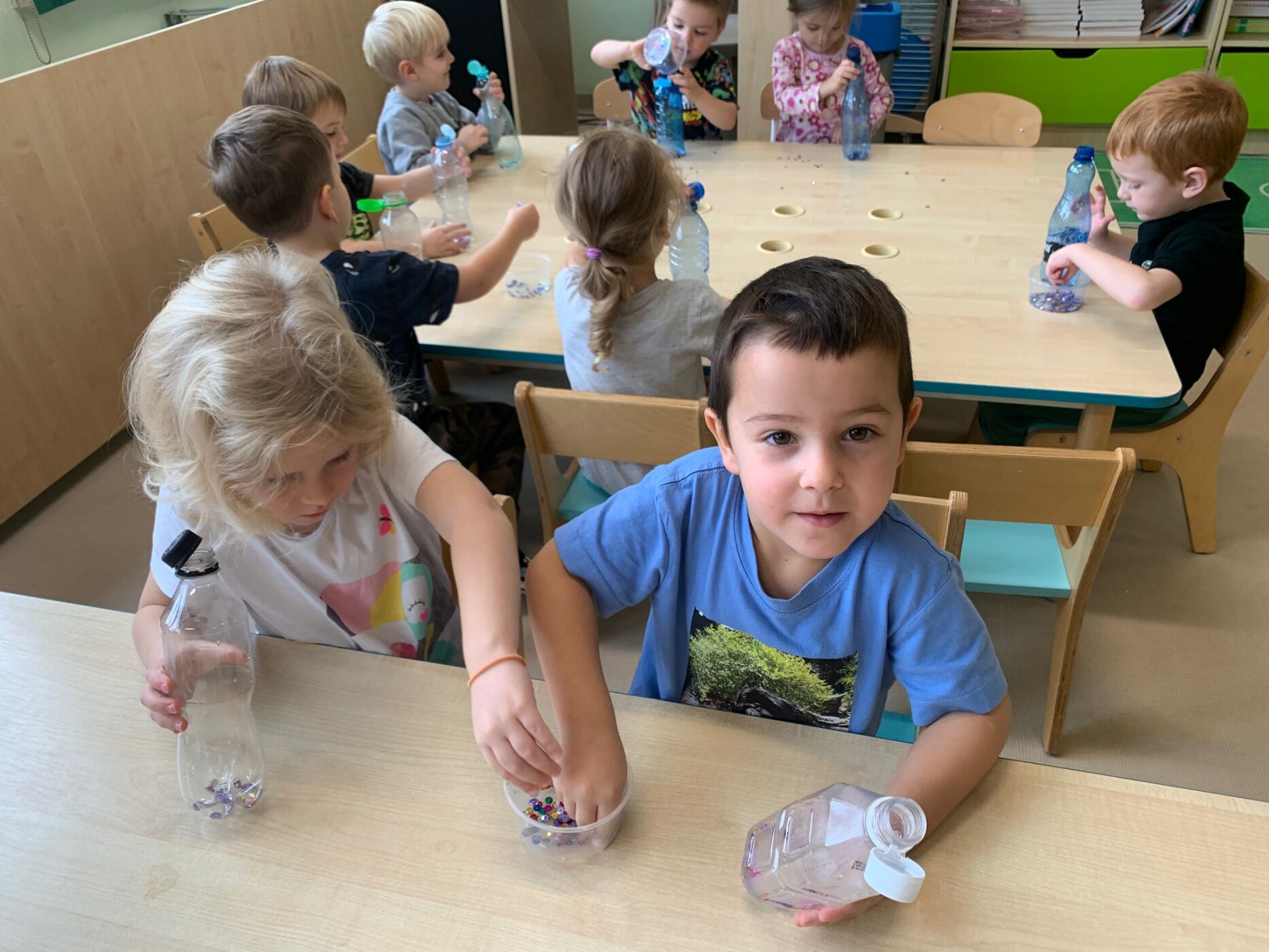 Podczas zajęć dzieci wykonywały butelki sensoryczne.