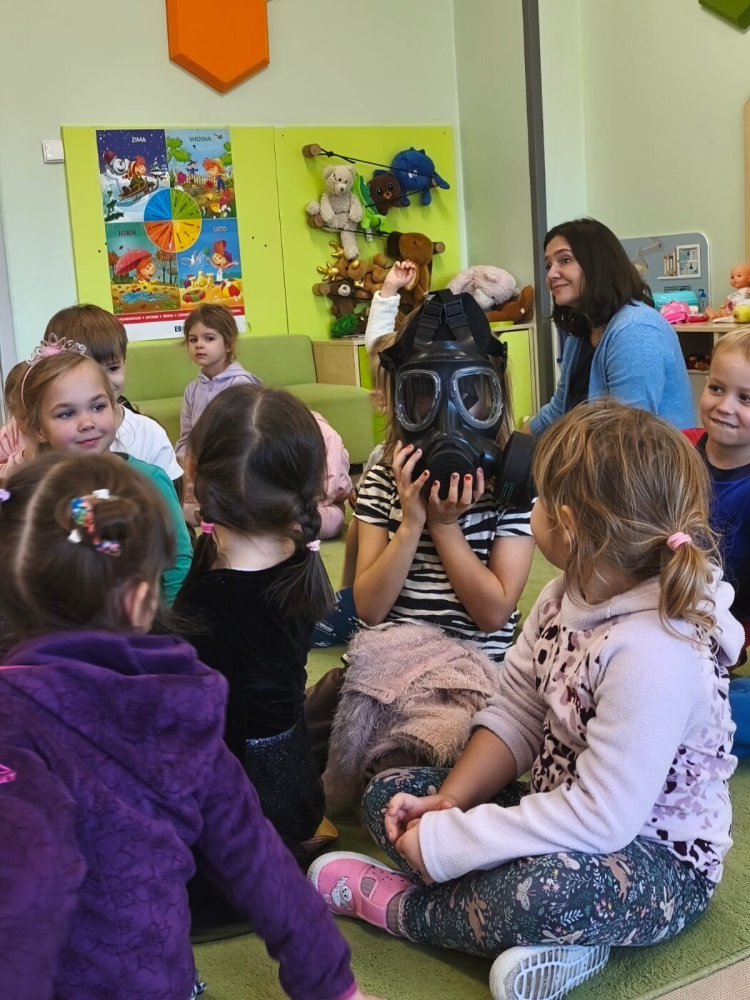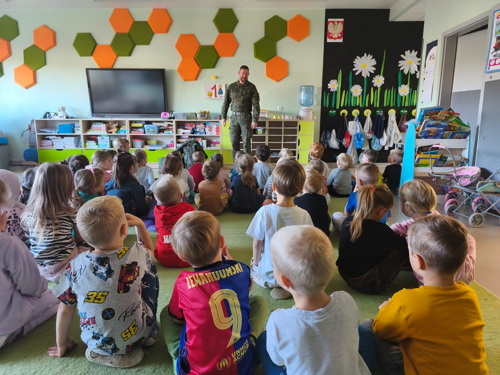Jest żołnierzem brygady pancernej. Opowiadał o swojej pracy oraz pokazywał dzieciom swoje umundurowanie i sprzęt.