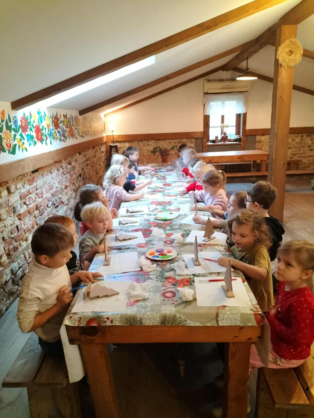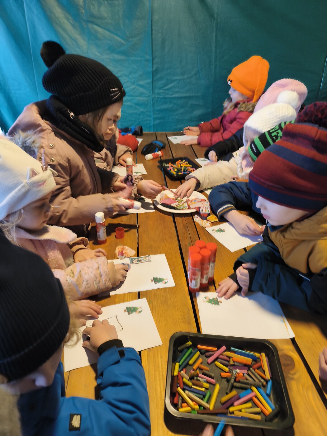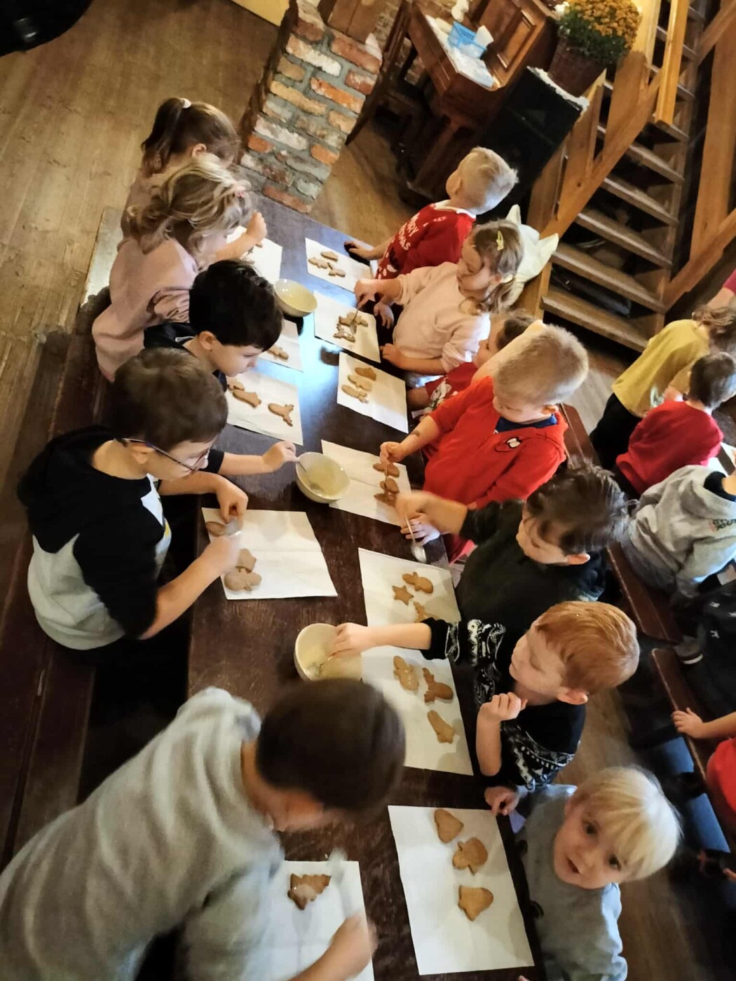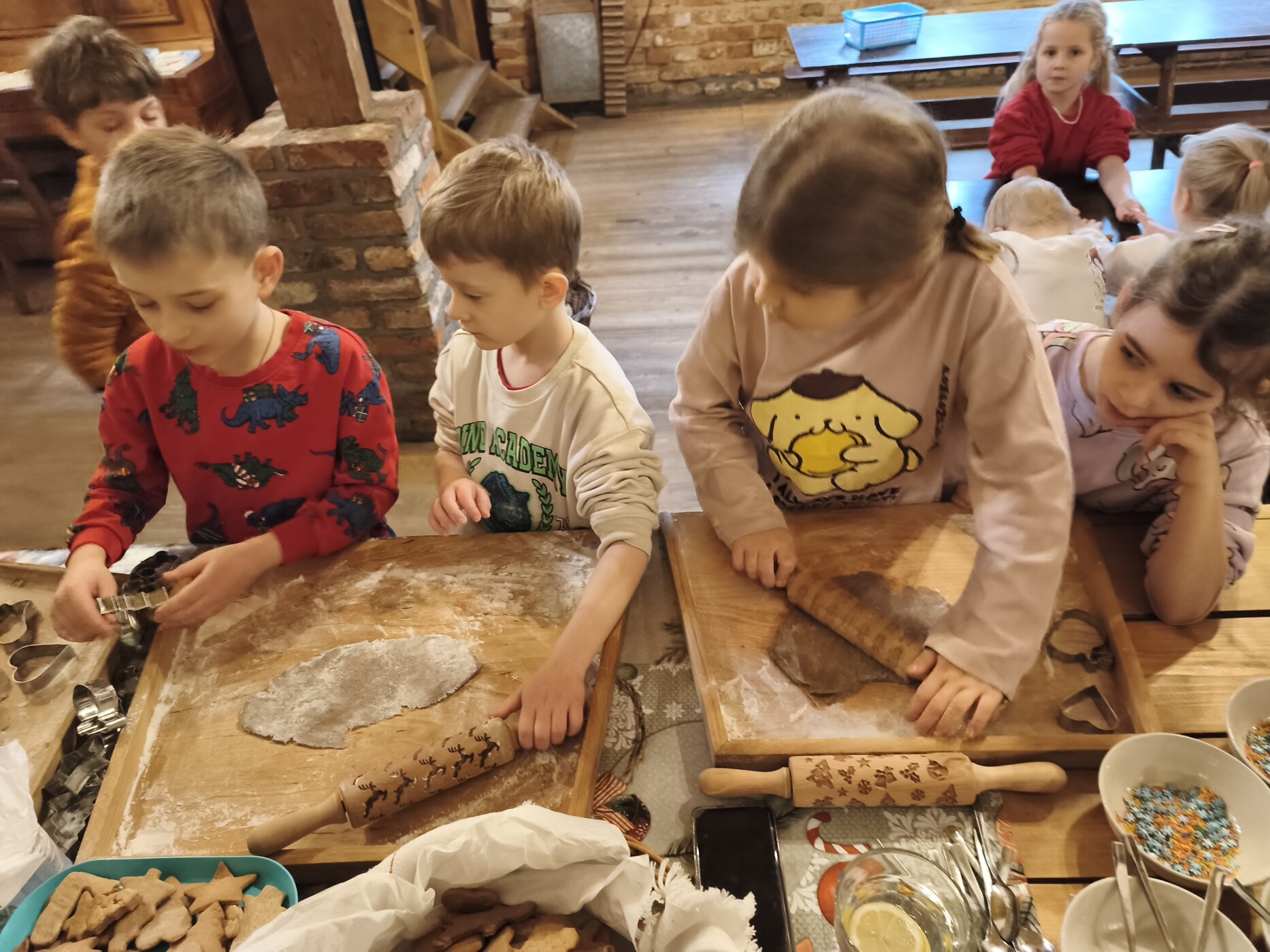 Tam czekało na nich wiele atrakcji: pisanie listu do Mikołaja, robienie pierniczków, malowanie choinek, zwierzątka oraz